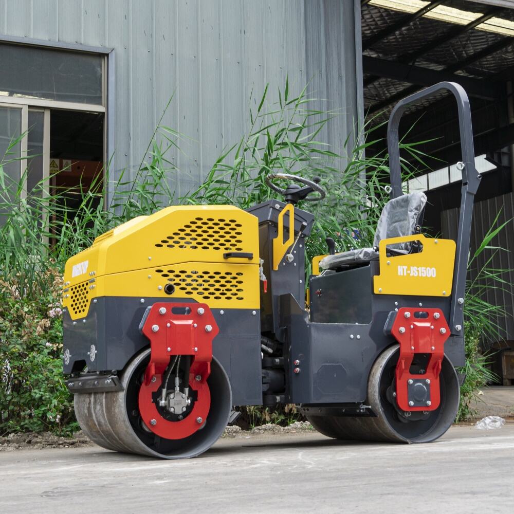 The Hightop HT-JS1500 is a 1.5-tonne ride-on double-drum roller specifically engineered for efficient compaction in confined spaces. Powered by premium domestic diesel engines such as Changchai, its robust 13HP output is paired with an optimised powertrain that balances power delivery with fuel efficiency. A fully hydraulic drive system, comprising an international-brand variable displacement piston pump and a cycloidal hydraulic motor, enables dual-wheel drive and agile steering. Its minimal turning radius accommodates complex working environments such as corners and trenches. The unit incorporates a front-wheel hydraulic vibration system, combining 30kN of robust excitation force with 75Hz high-frequency vibration. Paired with specially heat-treated high-strength alloy steel drums, it delivers exceptional compaction uniformity and outstanding wear resistance. This enables efficient compaction of diverse materials including soil, asphalt, and aggregate, achieving industry-leading compaction standards. The compact design, measuring 2200×920×1550mm with a weight of 1380kg, facilitates access to confined spaces like factory buildings and residential pathways. A 30% gradient capability and 0-8km/h travel speed accommodate mildly sloped terrain. Practical features include one-touch electric start, an electronically controlled water spray system (with automatic scraper cleaning to prevent material adhesion), and dual front/rear LED work lights. An 80-litre water tank extends continuous operation time, while an adjustable comfort seat and standardised, intuitive controls reduce operator fatigue. Modular construction facilitates future maintenance. Widely applicable for municipal road repairs, residential construction, bridge/culvert backfilling, sports ground surfacing, and diverse construction scenarios.